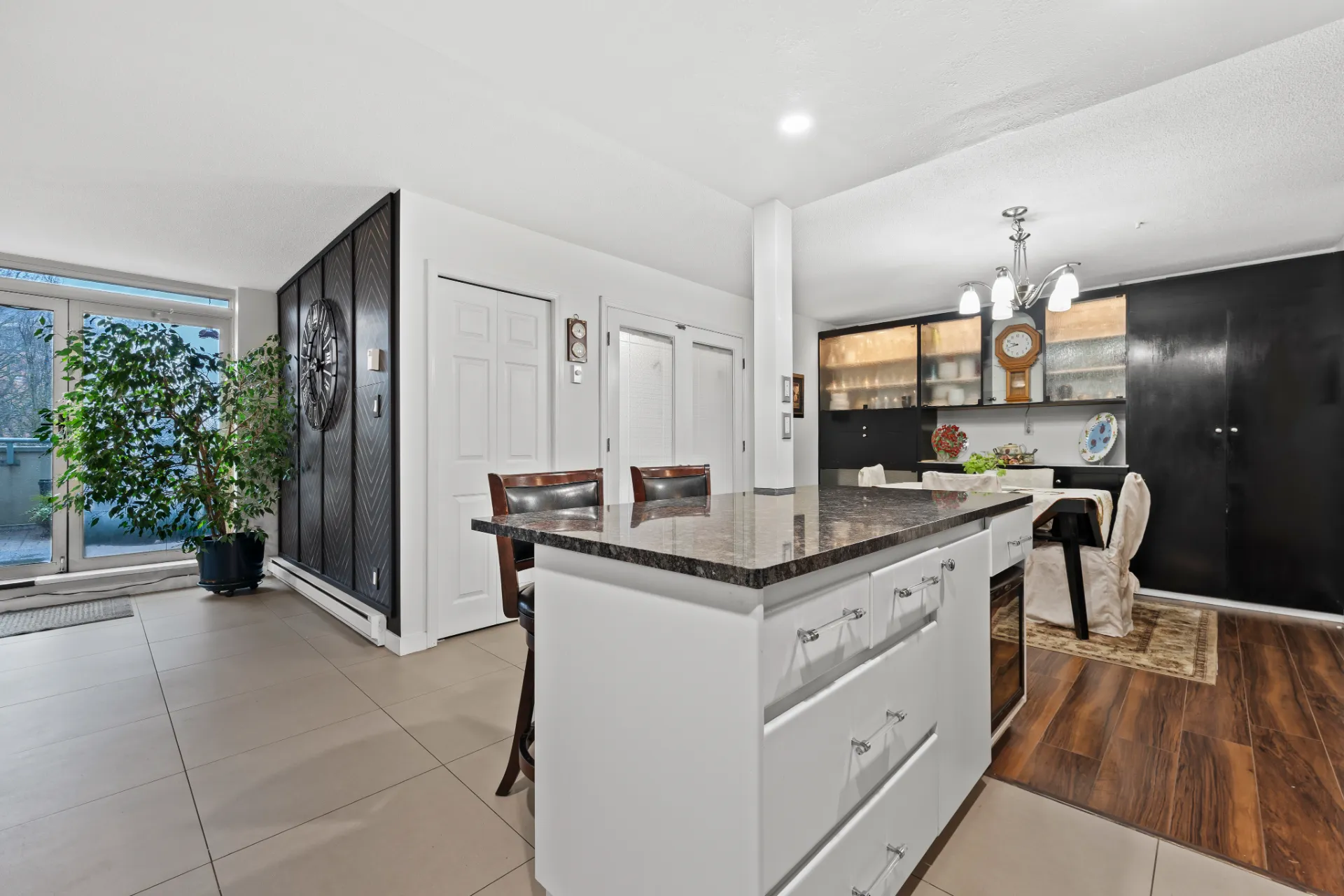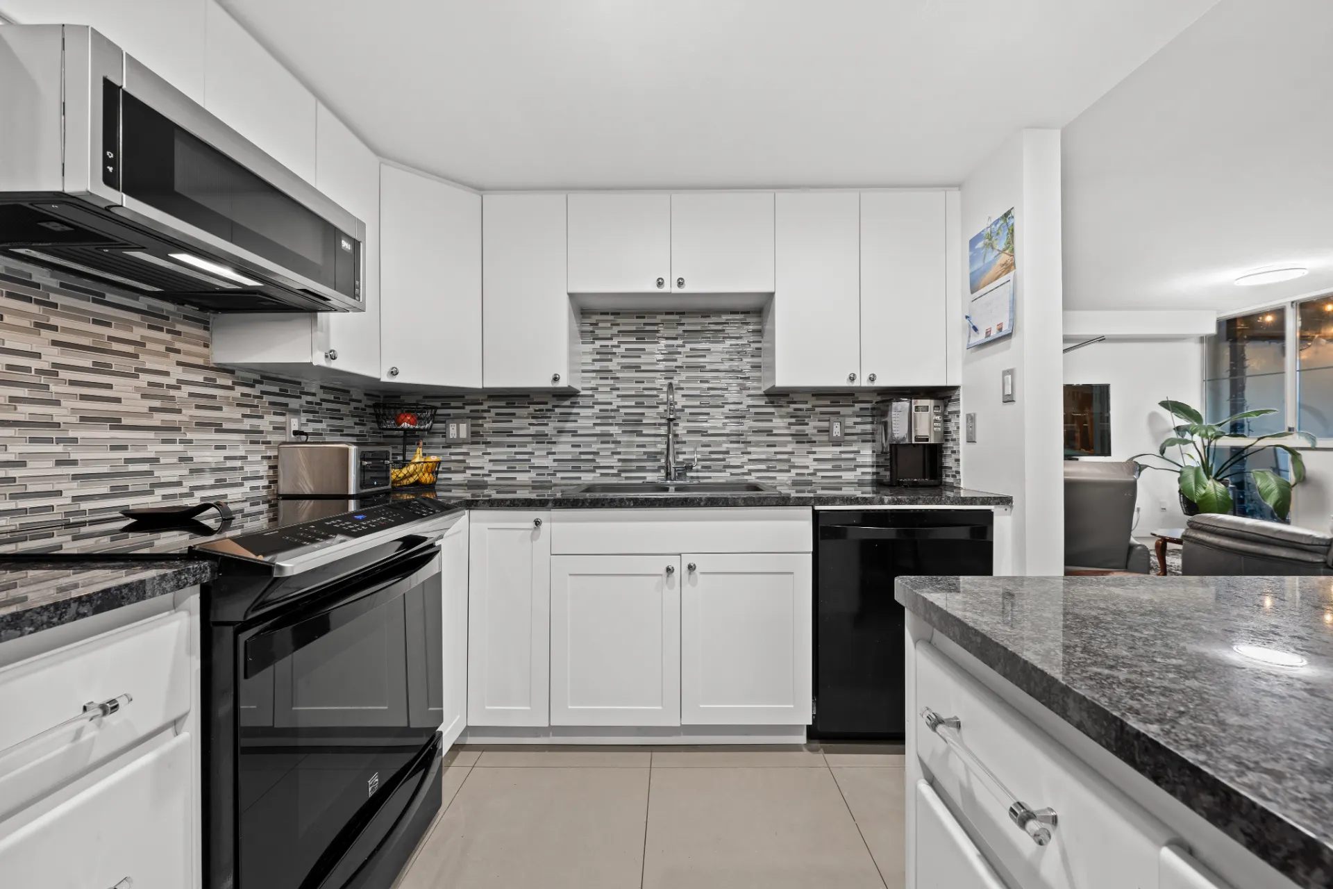 Experience refined 2-bedroom, 2-bath living in this fully renovated 1,275 sq ft home, featuring a stunning 285 sq ft east-facing patio—perfect for entertaining or relaxing. Includes parking, storage, and full building amenities, just steps from SkyTrain, waterfront, and parks.