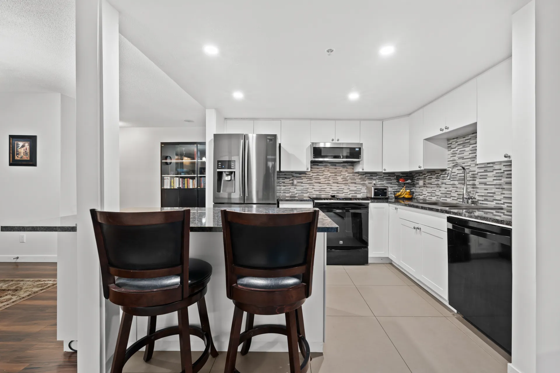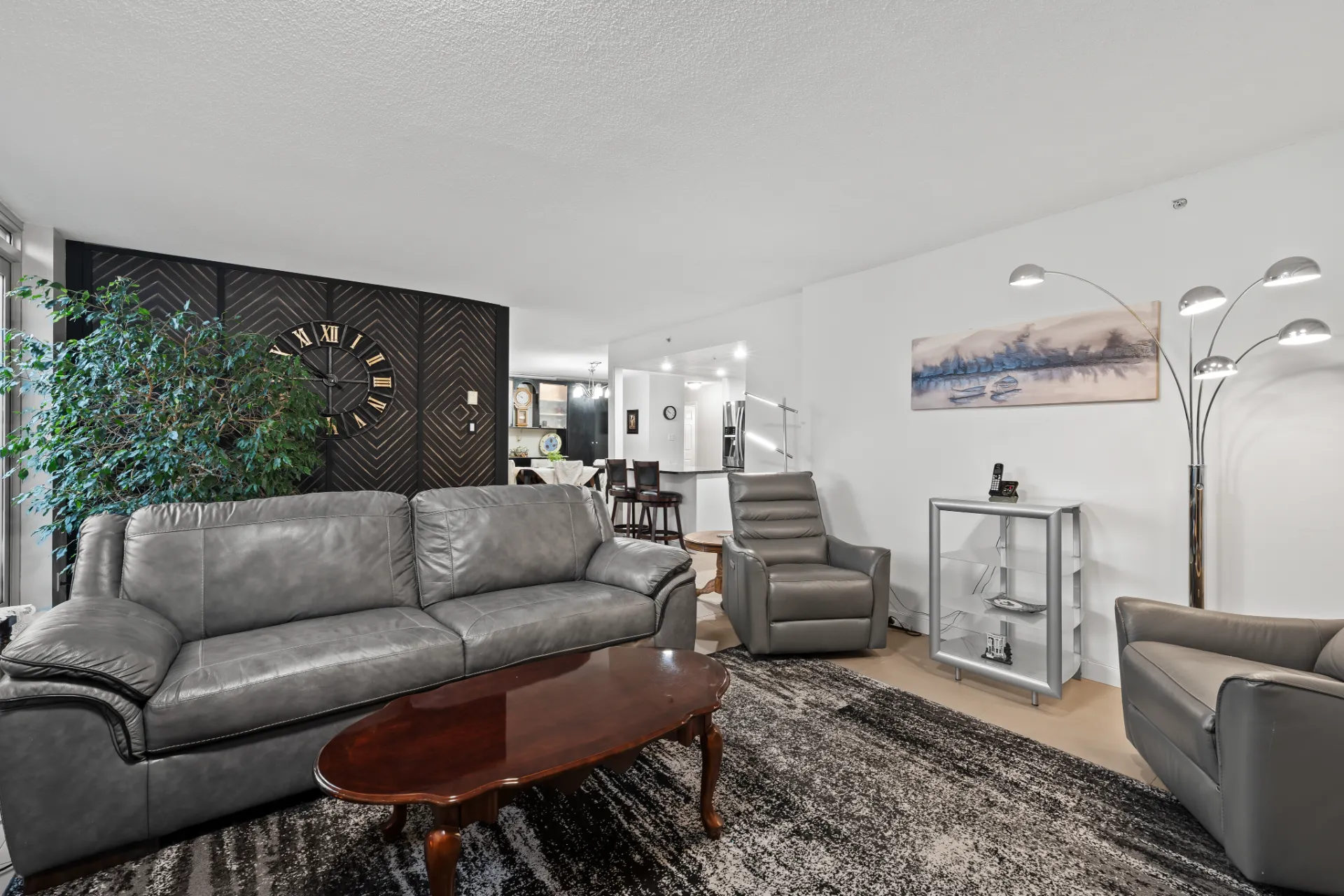 Experience refined 2-bedroom, 2-bath living in this fully renovated 1,275 sq ft home, featuring a stunning 285 sq ft east-facing patio—perfect for entertaining or relaxing. Includes parking, storage, and full building amenities, just steps from SkyTrain, waterfront, and parks.